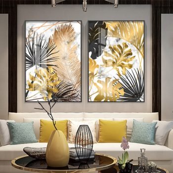 Nordic Plants Golden Leaf Canvas Painting