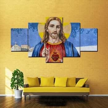 5-Piece Canvas Picture Set with Depiction of Jesus Christ and Sacred Heart