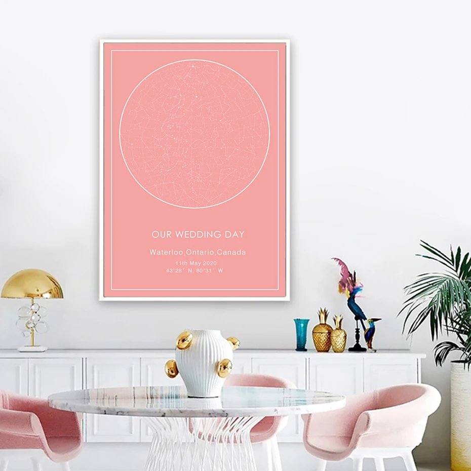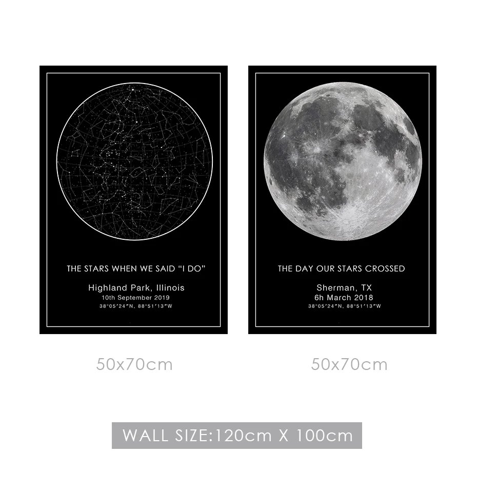 Each star has its own meaning. Let’s gift the one you love with a Custom star map they can cherish for a lifetime. The product is made of high-quality canvas specially designed for canvas printing, colorfast, waterproof, and produces sharp images. It is very suitable for decoration, you can hang it in the bedroom, living room, office, and even the baby’s room so that your baby can get acquainted with the brilliant. This painting is custom-made according to the date you request, each special day will have a different map. Along with loving wishes, it will be a meaningful gift for someone you love. Buy right now!