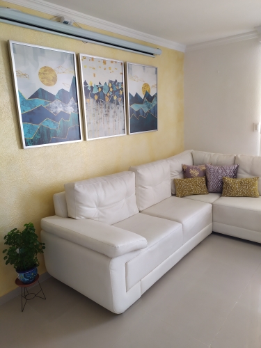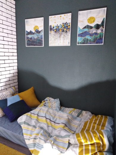 Blue, green and yellow geometric design for living room, bedroom, office, new home, house warming, birthday gift. The perfect way to complete your home and add character to every room.