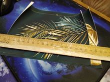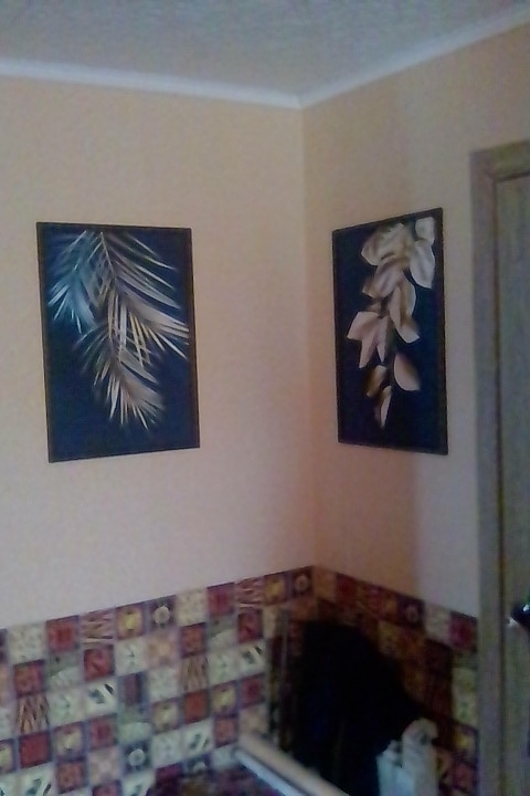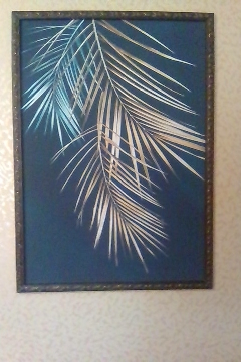 The paintings came whole in a tube, in appearance everything is normal, although I thought that the background of the paintings is black, and it is dark emerald, but still beautiful background, I like, here in the frame and on the wall class, delivery of 1,5 months probably coronovirus interfered with delivery.