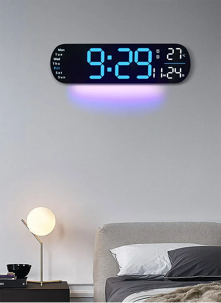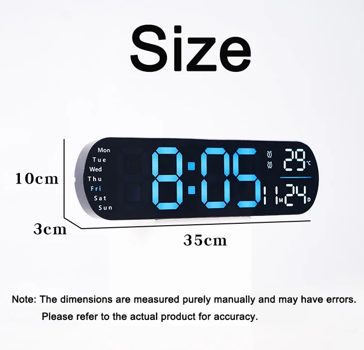 * LCD large screen display, date, week, temperature, time and alarm clock are displayed on one screen.