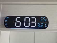Great, just what I wanted. Gives the time, temperature and date. Bright well. Ideal size, installed in the living room above my TV. I recommend to 100%