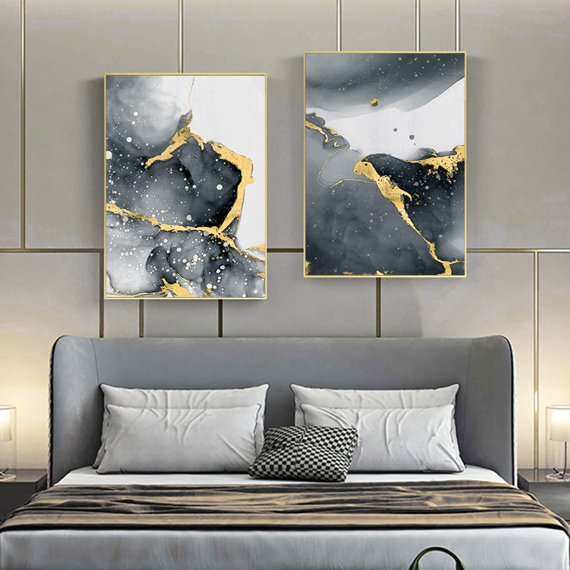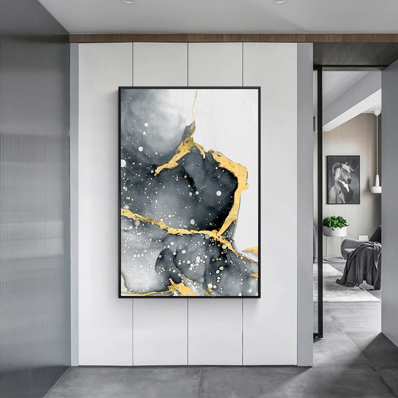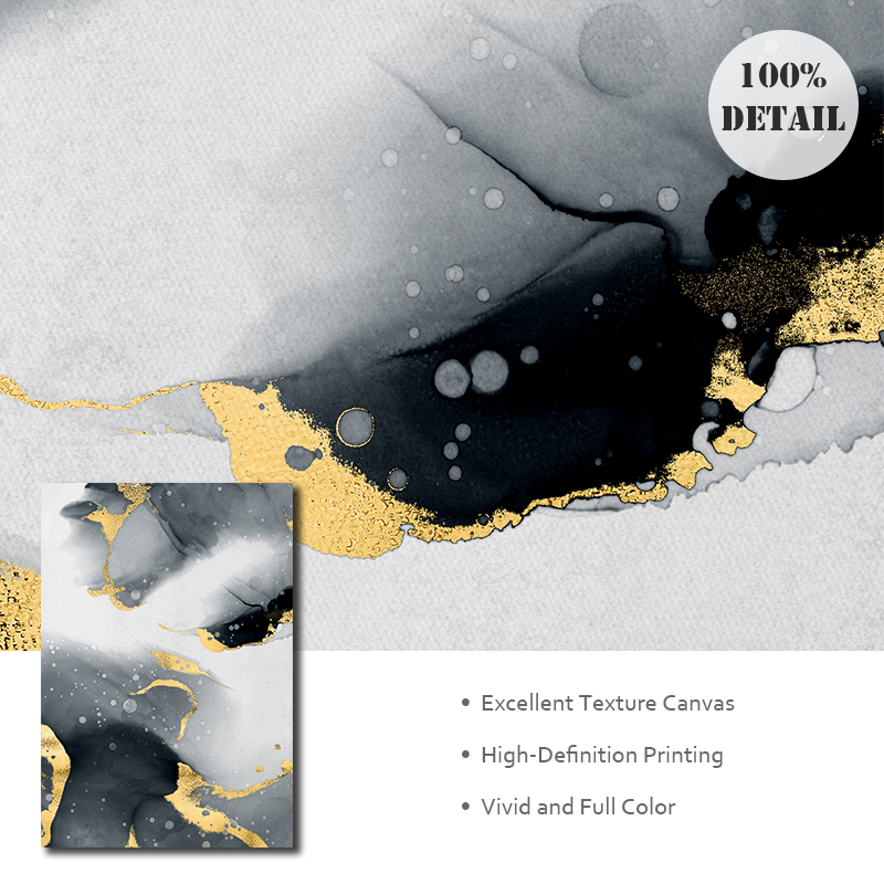 This is a modern abstract canvas art which will give any open wall in your home a tasteful touch of glamour. The design showcases a contemporary abstract design with gold, white and grey tones. This canvas print is a perfect addition to any home decor to give it a touch of style.