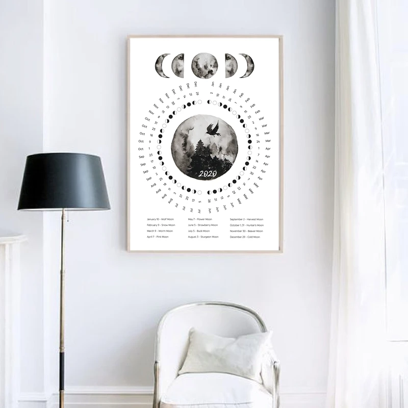 Moon Phases Calendar Canvas Art
