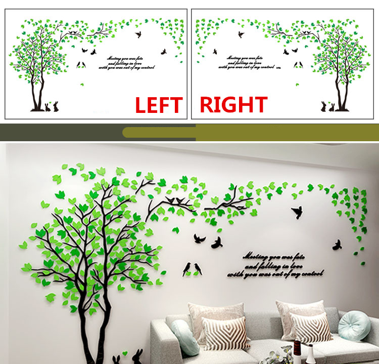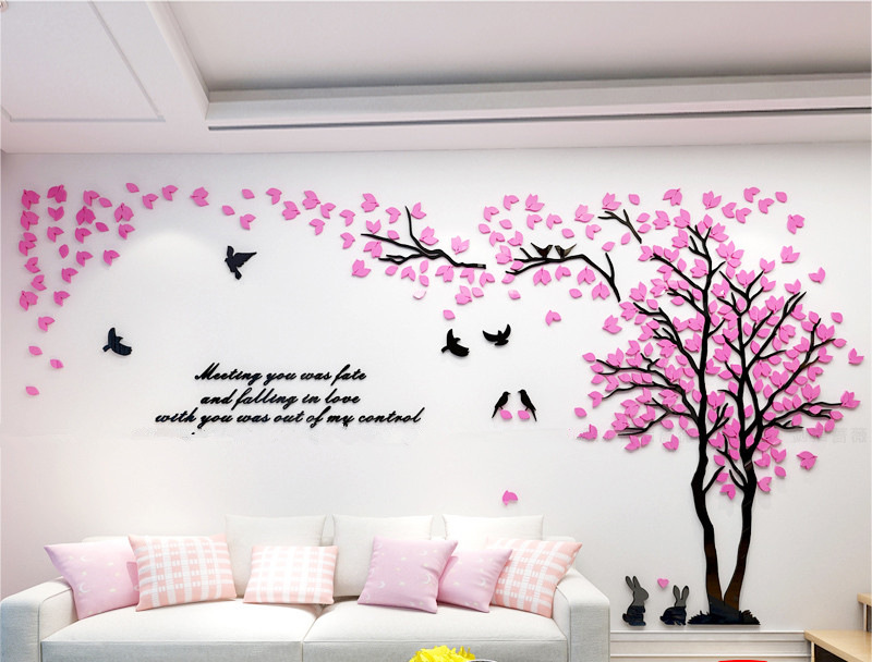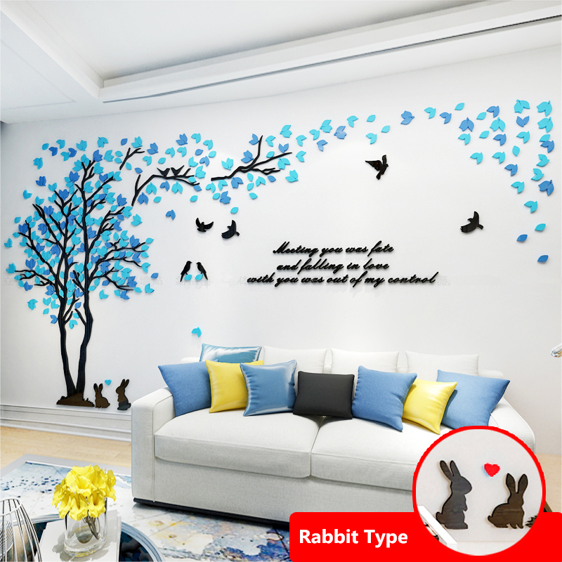3D Wall Sticker Love Tree With Bird Rabbit Decals For Wall Living Room Decoration Acrylic Wall Stickers TV Background Wallpaper