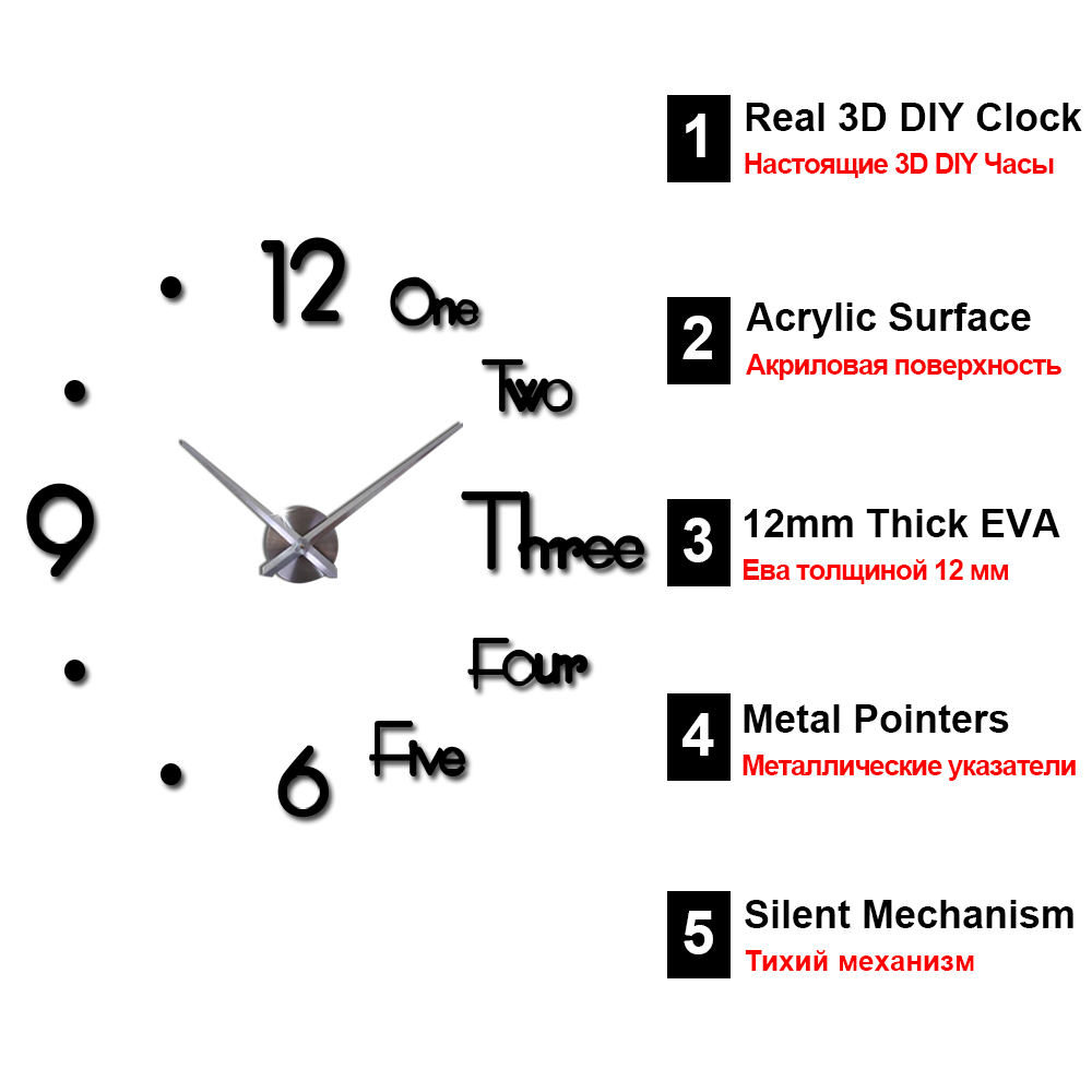 Wall Sticker Clock is a fashionable decoration, designed with an acrylic surface, shiny and easy to wipe clean. Metal pointers, strong resistance of corrosion, accurate and durable. Silent mechanism, provide a quiet environment, good for sleep. High quality EVA, density sponge, not fade, environment friendly and non-toxic. Wall Sticker Clock is a free DIY clock the favorite of your family.